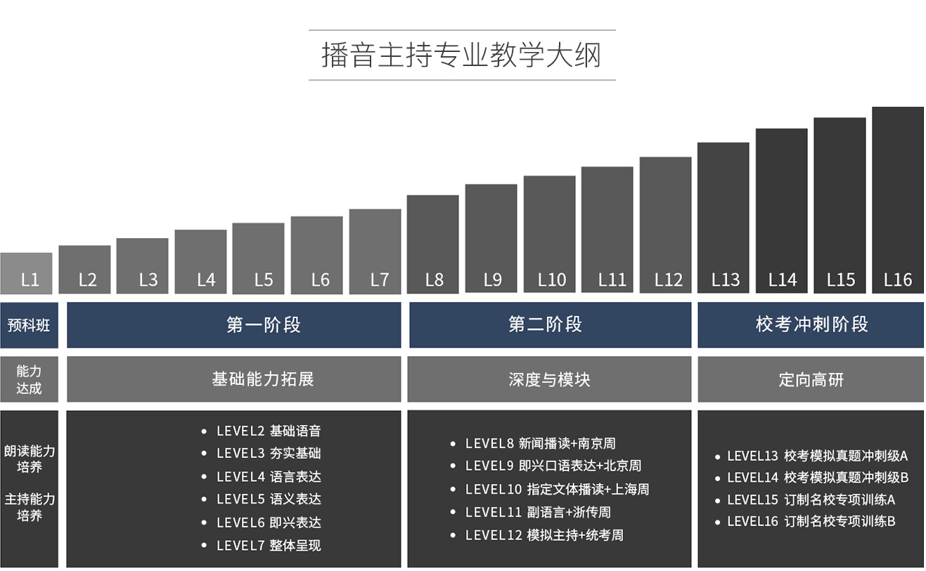 定制化課程是印象獨家制勝法寶!上海印象播音專業實習小班教學,每班限招 15 人,導師對學員從學習研討、家長反饋、擇校指導、錄制帶考全程負責。以大課+小課模式,輔以聲樂、形體、表演等課程提高學生綜合素養,同時以每周小考兩周大考的模擬測評方式提高學生應試能力。
